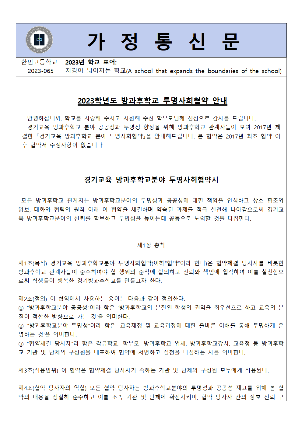 2023Çг⵵ ¹æ°úÈÄÇб³ Åõ¸í»çȸÇù¾à ¾È³»¸¦ À§ÇÑ °¡Á¤Åë½Å¹®
