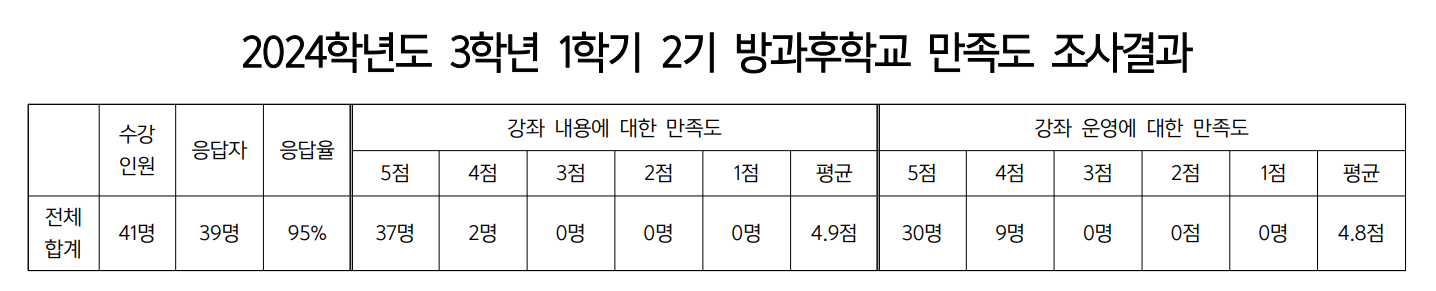 2024Çг⵵ 3Çгâ 1Çбâ 2±â ¹æ°úÈÄÇб³ ¸¸Á·µµ Á¶»ç °á°ú