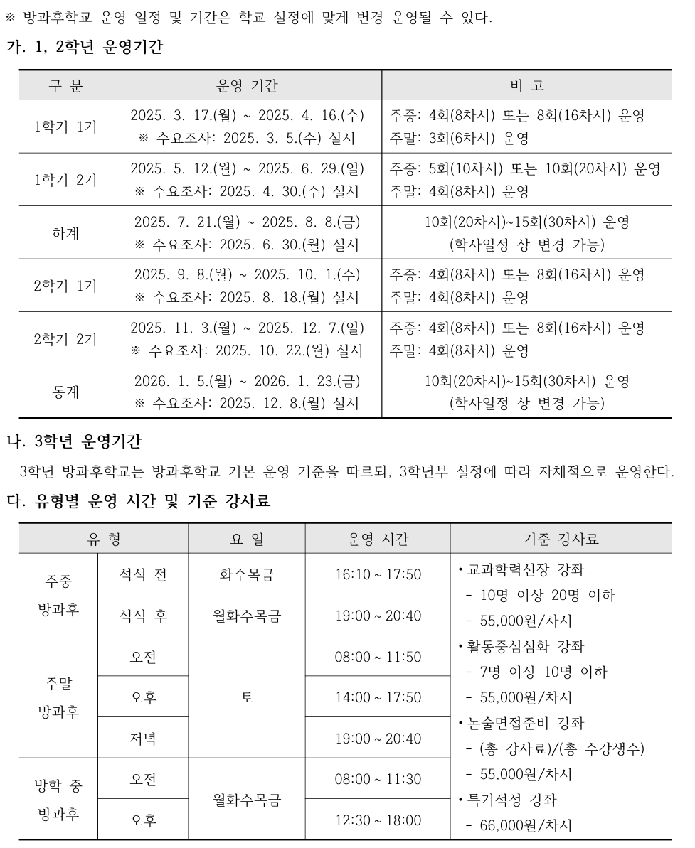 2025Çг⵵ ±³°ú ¹× Ư±âÀû¼º ¹æ°úÈÄÇб³ ¿¬°£ ¿î¿µ°èȹ