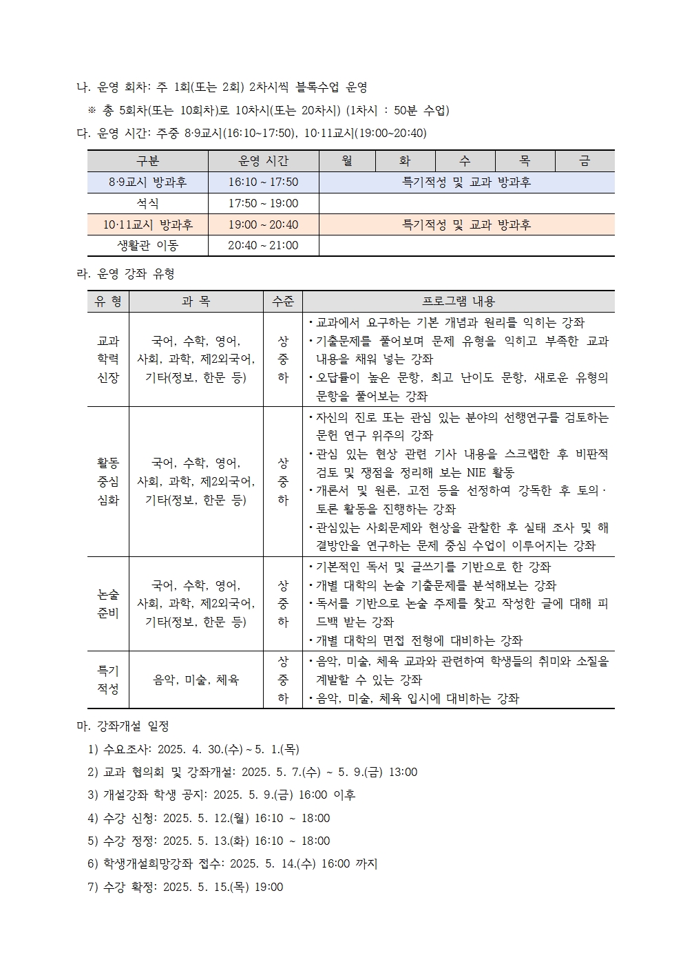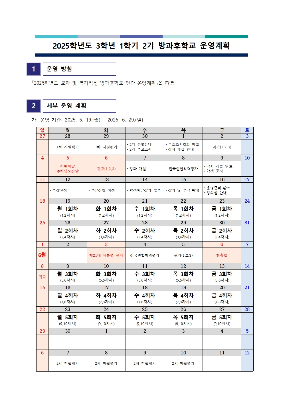 2025Çг⵵ 3Çгâ 1Çбâ 2±â ¹æ°úÈÄÇб³ ¿î¿µ°èȹ