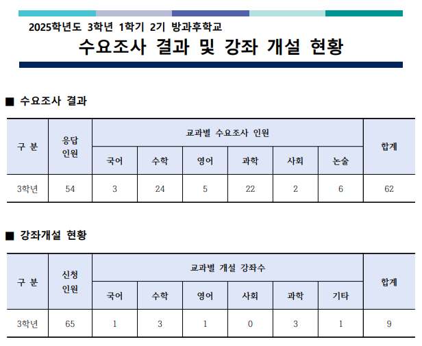 2025Çг⵵ 3Çгâ 1Çбâ 2±â ¹æ°úÈÄÇб³ ¼ö¿äÁ¶»ç °á°ú ¹× °­Á°³¼³ ÇöȲ ¾È³»