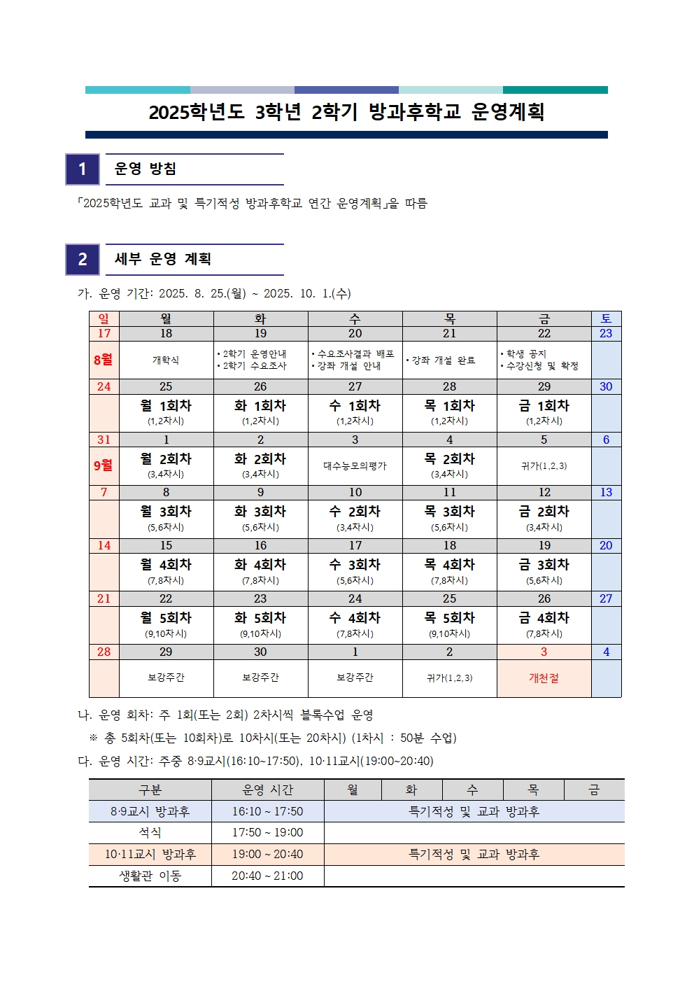 2025Çг⵵ 3Çгâ 2Çб⠹æ°úÈÄÇб³ ¿î¿µ°èȹ