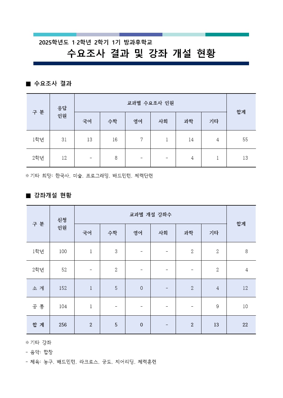 2025Çг⵵ 1¡¤2Çгâ 2Çбâ 1±â ¹æ°úÈÄÇб³ ¼ö¿äÁ¶»ç °á°ú ¹× °­Á°³¼³ ÇöȲ ¾È³»
