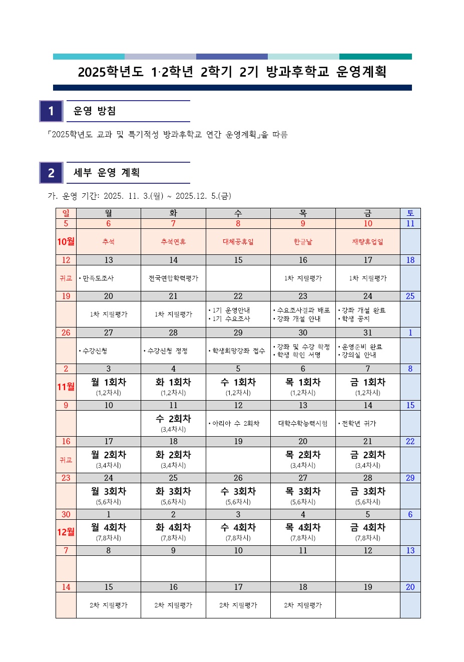 2025Çг⵵ 1¡¤2Çгâ 2Çбâ 2±â ¹æ°úÈÄÇб³ ¿î¿µ°èȹ