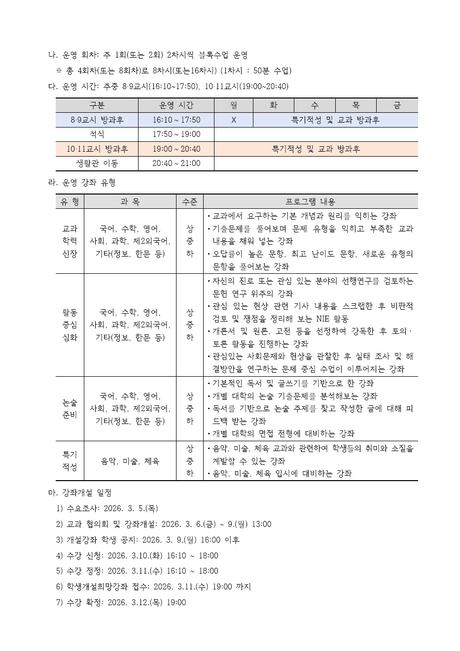 2026Çг⵵ 1¡¤2Çгâ 1Çбâ 1±â ¹æ°úÈÄÇб³ ¿î¿µ°èȹ