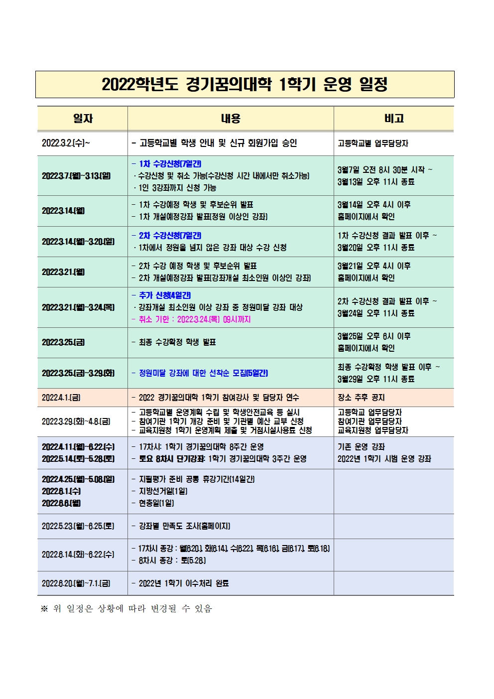 2022Çг⵵ °æ±â²ÞÀÇ´ëÇÐ 1Çб⠿ ÀÏÁ¤ ¾È³»