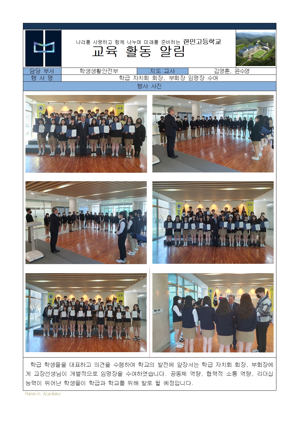 2023-8. ÇбÞÀÚġȸ ȸÀå, ºÎȸÀå ÀÓ¸íÀå ¼ö¿©(2023. 3. 27)