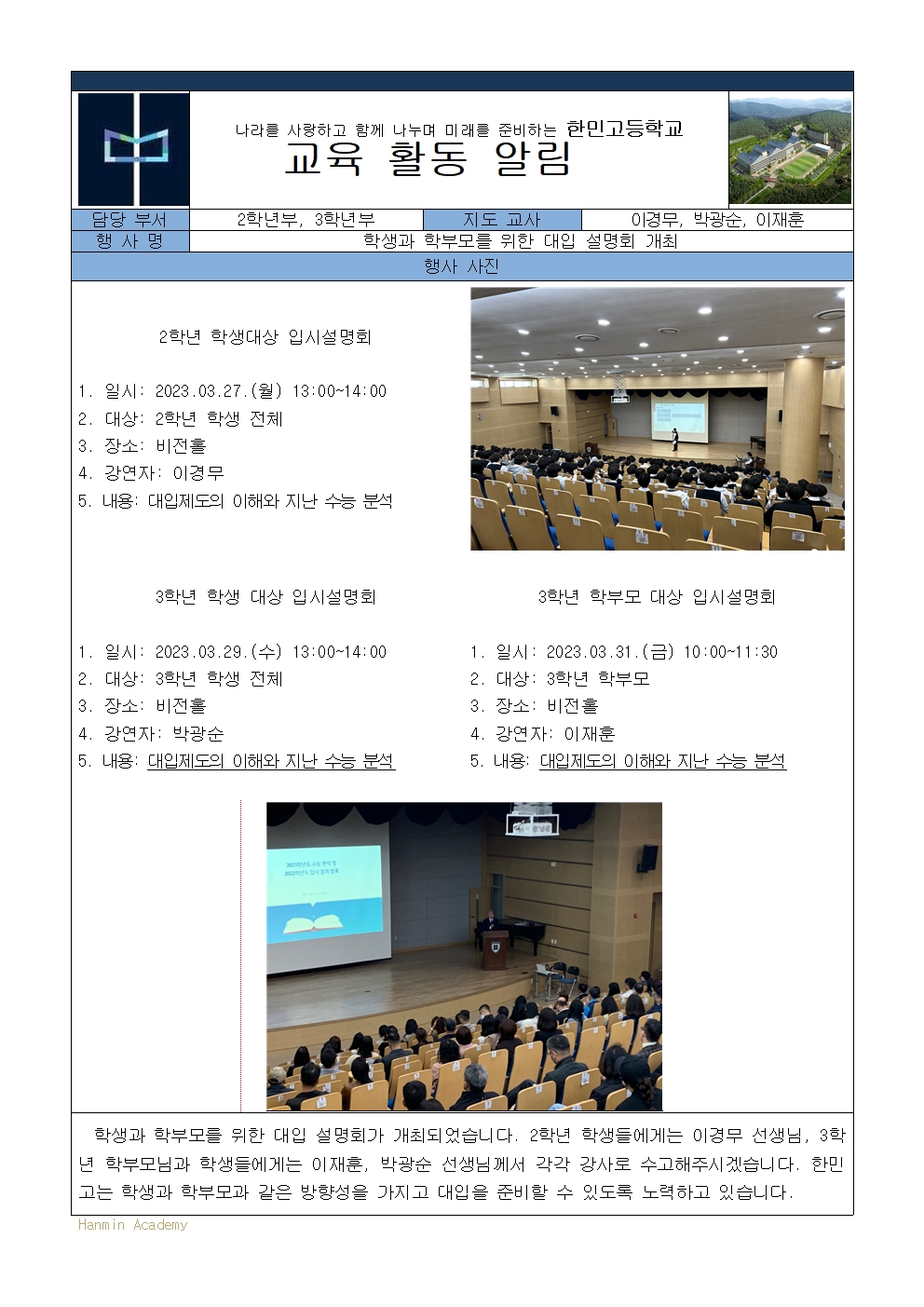 2023-12. Çлý°ú Çкθ𸦠À§ÇÑ ´ëÀÔ ¼³¸íȸ °³ÃÖ(2023. 3. 27, 29, 31)