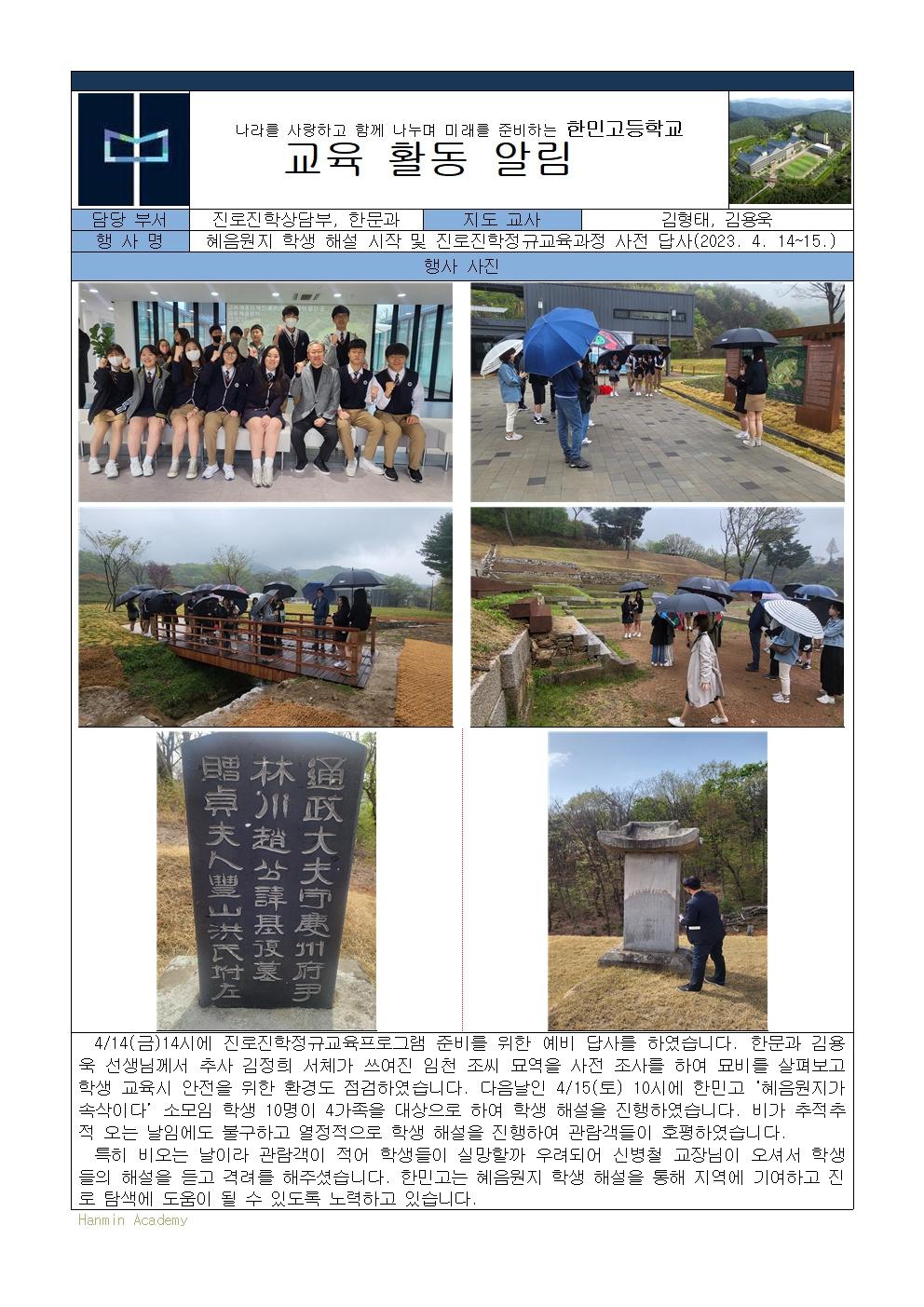 2023-20. ÇýÀ½¿øÁö Çлý ÇØ¼³ ½ÃÀÛ ¹× Áø·ÎÁøÇÐÁ¤±Ô±³À°°úÁ¤ »çÀü ´ä»ç(2023. 4. 14~15)