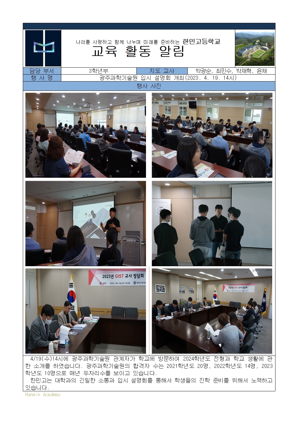 2023-22. ±¤ÁÖ°úÇбâ¼ú¿ø ÀԽà ¼³¸íȸ °³ÃÖ(2023. 4. 19. 14½Ã)
