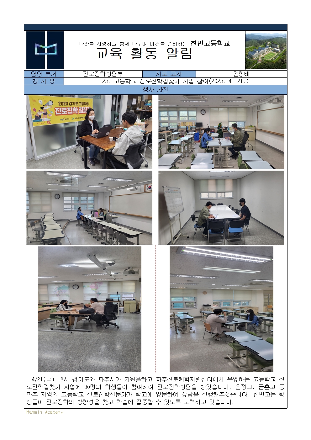 2023-23. °íµîÇб³ Áø·ÎÁøÇбæÃ£±â »ç¾÷ Âü¿©(2023. 4. 21.)