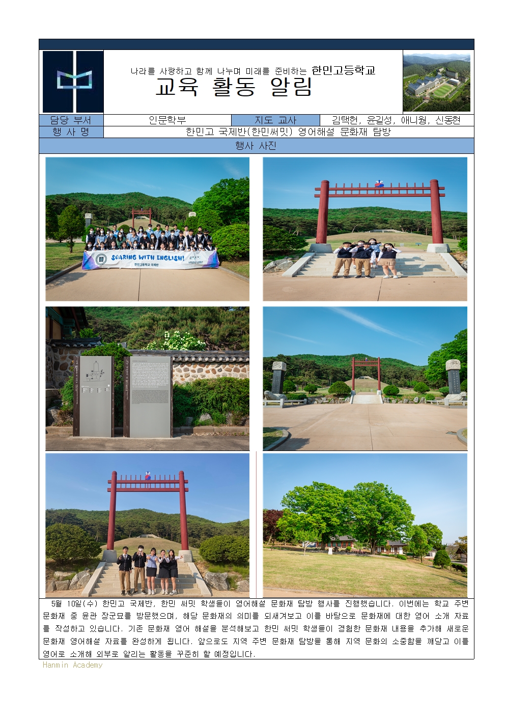 2023-31. ÇÑ¹Î°í ±¹Á¦¹Ý, ÇѹΠ½á¹Ô ¿µ¾îÇØ¼³ ¹®È­Àç Ž¹æ(2023. 5.10)