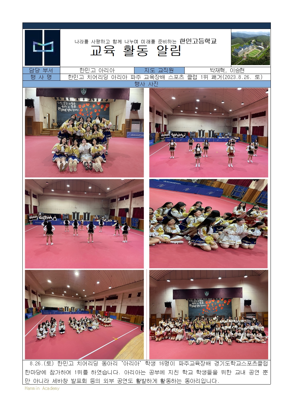 2023-87. Çѹΰí Ä¡¾î¸®µù ¾Æ¸®¾Æ ÆÄÁÖ ±³À°Àå¹è ½ºÆ÷Ã÷ Ŭ·´ 1À§ Äè°Å(2023.8.26. Åä)