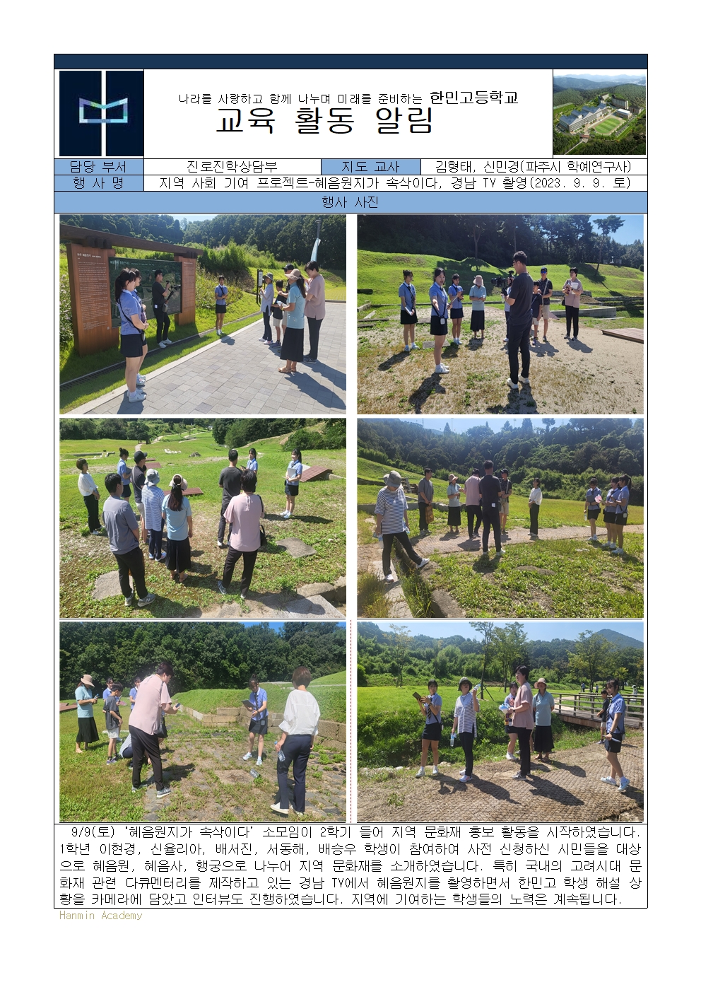 2023-91. Áö¿ª »çȸ ±â¿© ÇÁ·ÎÁ§Æ®-ÇýÀ½¿øÁö°¡ ¼Ó»èÀÌ´Ù, °æ³² TV ÃÔ¿µ(9. 9. Åä.)