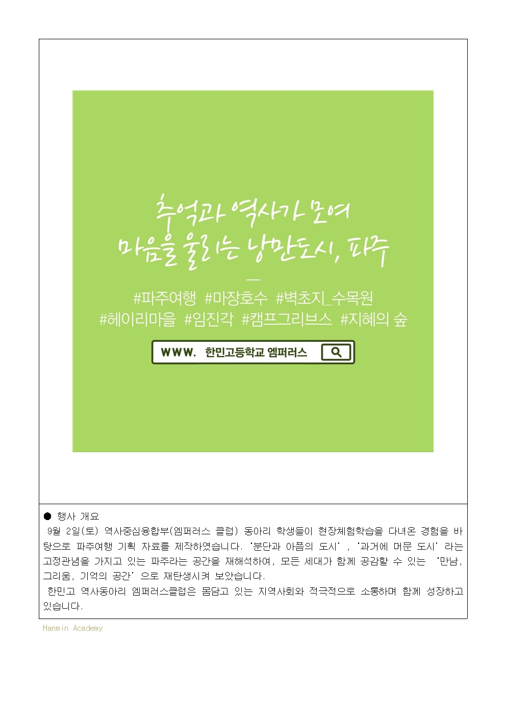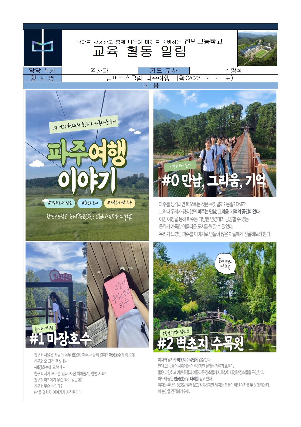 2023-95. ¿¥ÆÛ·¯½ºÅ¬·´ ÆÄÁÖ¿©Çà±âȹ Ȱµ¿(2023. 9. 2. Åä)