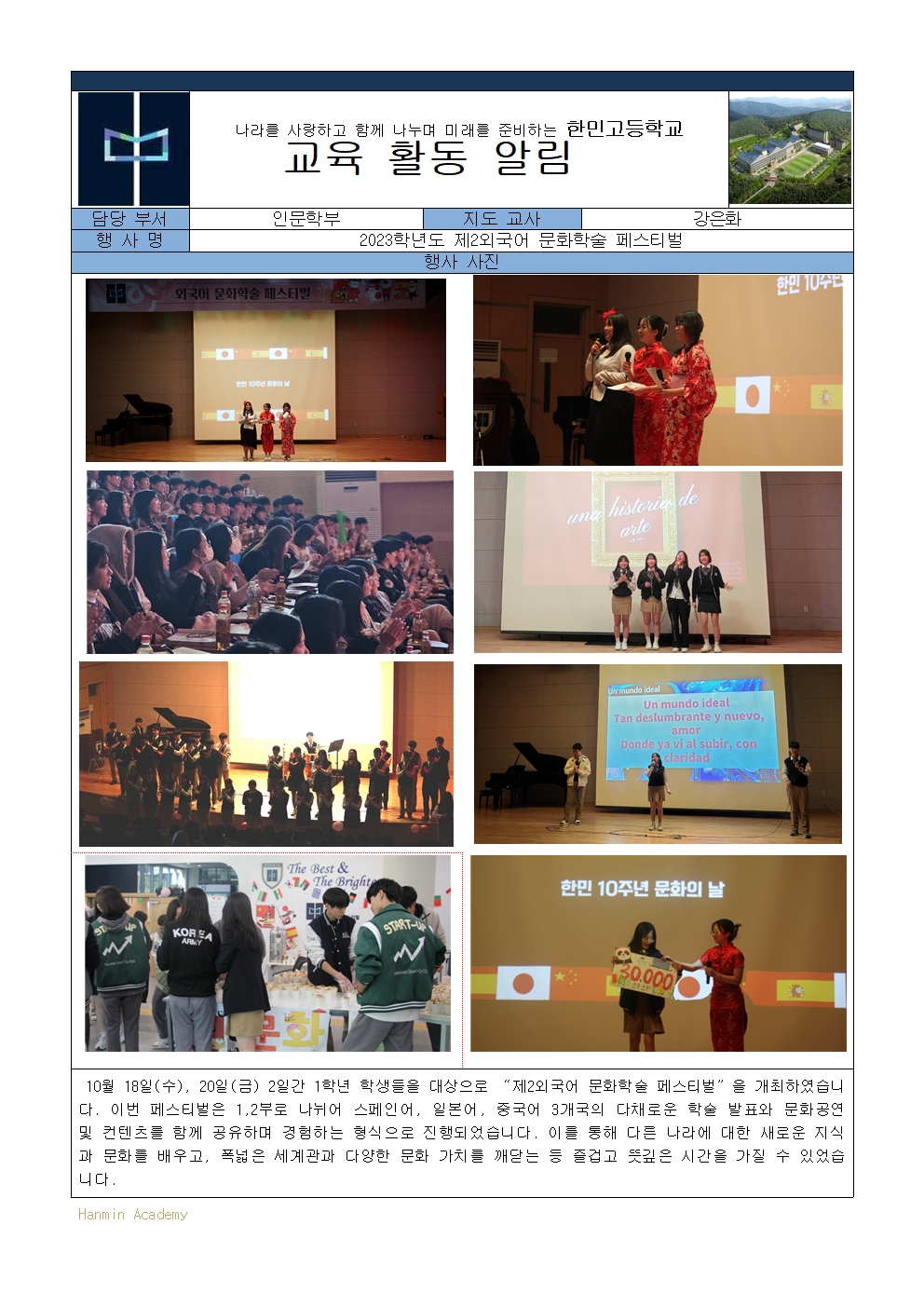 2023-106. Á¦2¿Ü±¹¾î ¹®È­Çмú Æä½ºÆ¼¹ú °³ÃÖ(2023.10.18~20)