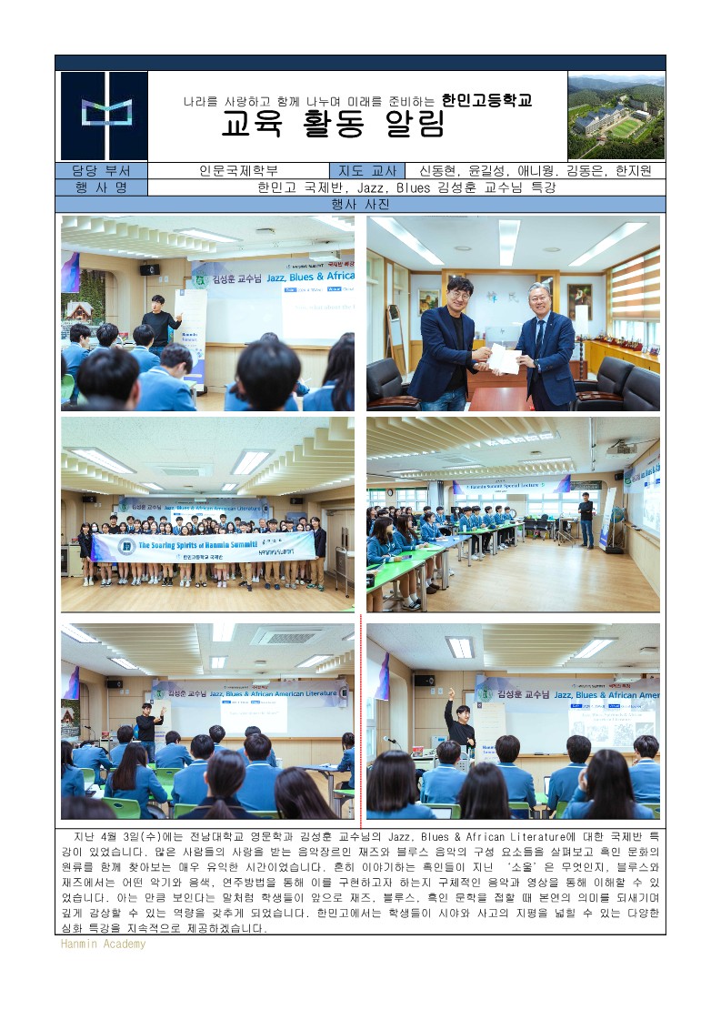 2024-23. ÇÑ¹Î°í ±¹Á¦¹Ý, Jazz Blues ±è¼ºÈÆ ±³¼ö´Ô Ư°­ (2024. 4. 3)