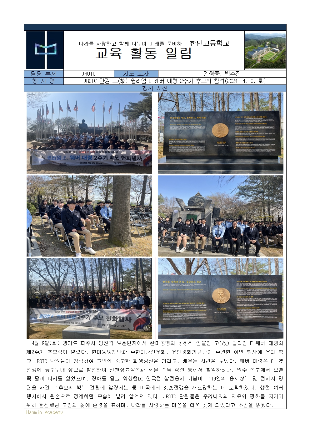 2024-24. JROTC ´Ü¿ø °í(ͺ) Àª¸®¾ö E ¿þ¹ö ´ë·É 2ÁÖ±â Ã߸ð½Ä Âü¼®(2024. 4. 9. È­)