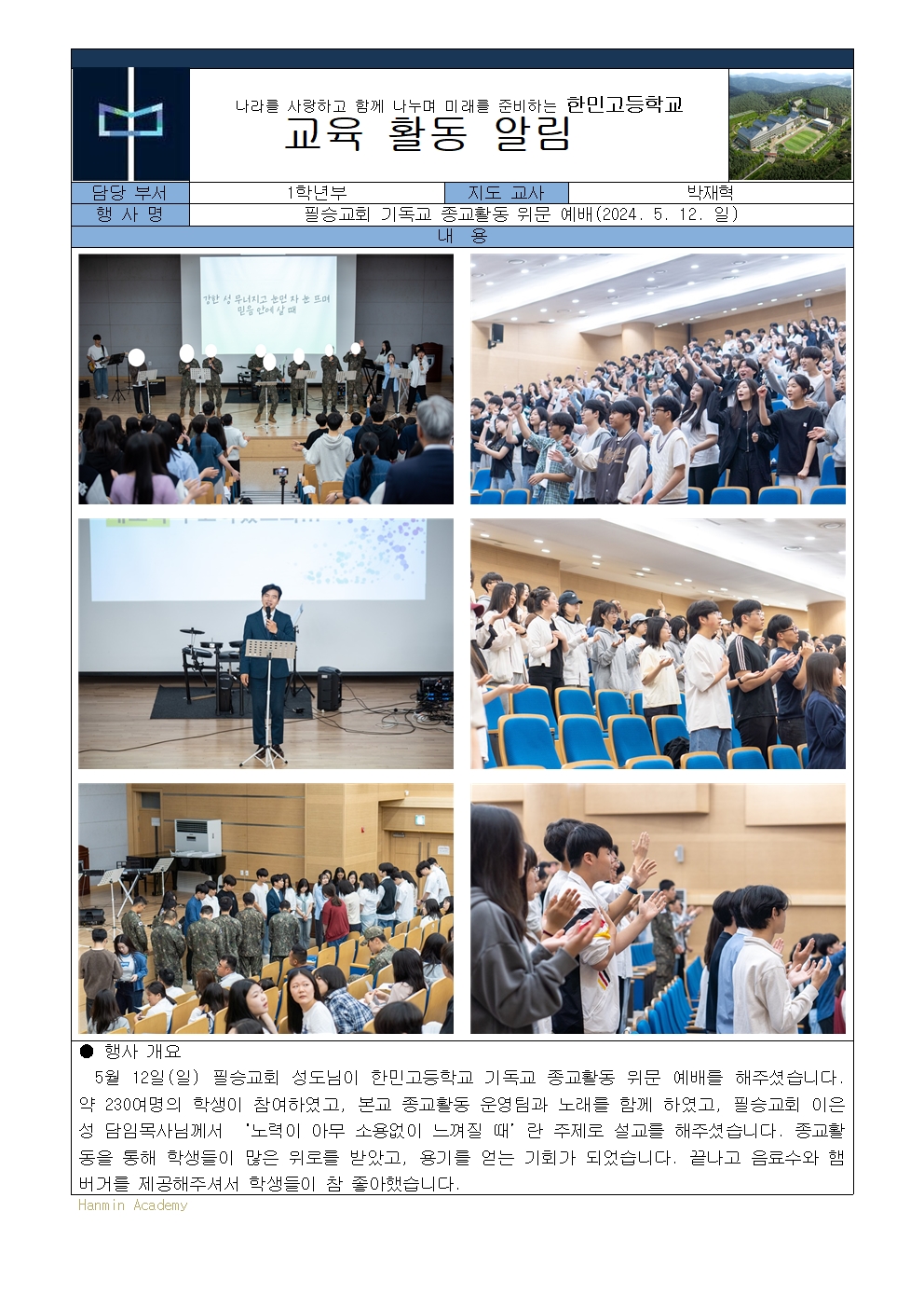 2024-30. Çʽ±³È¸ ±âµ¶±³ Á¾±³È°µ¿ À§¹® ¿¹¹è(2024.5.12.ÀÏ)