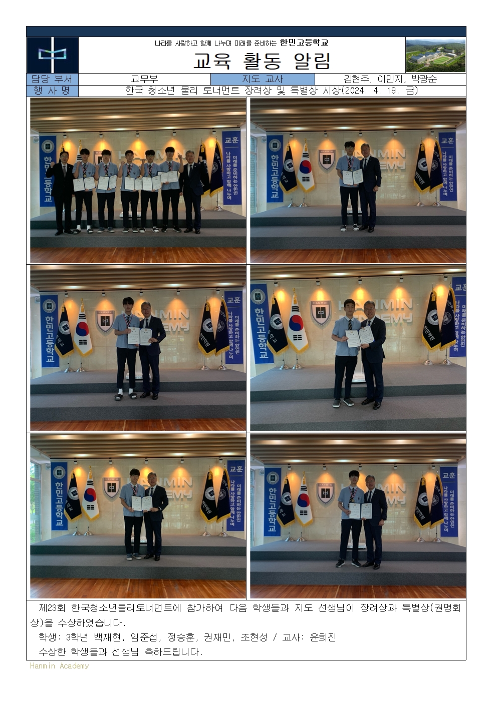 2024-34. Çѱ¹ û¼Ò³â ¹°¸® Åä³Ê¸ÕÆ® Àå·Á»ó ¹× Ưº°»ó ½Ã»ó(2024. 4. 19. ±Ý)