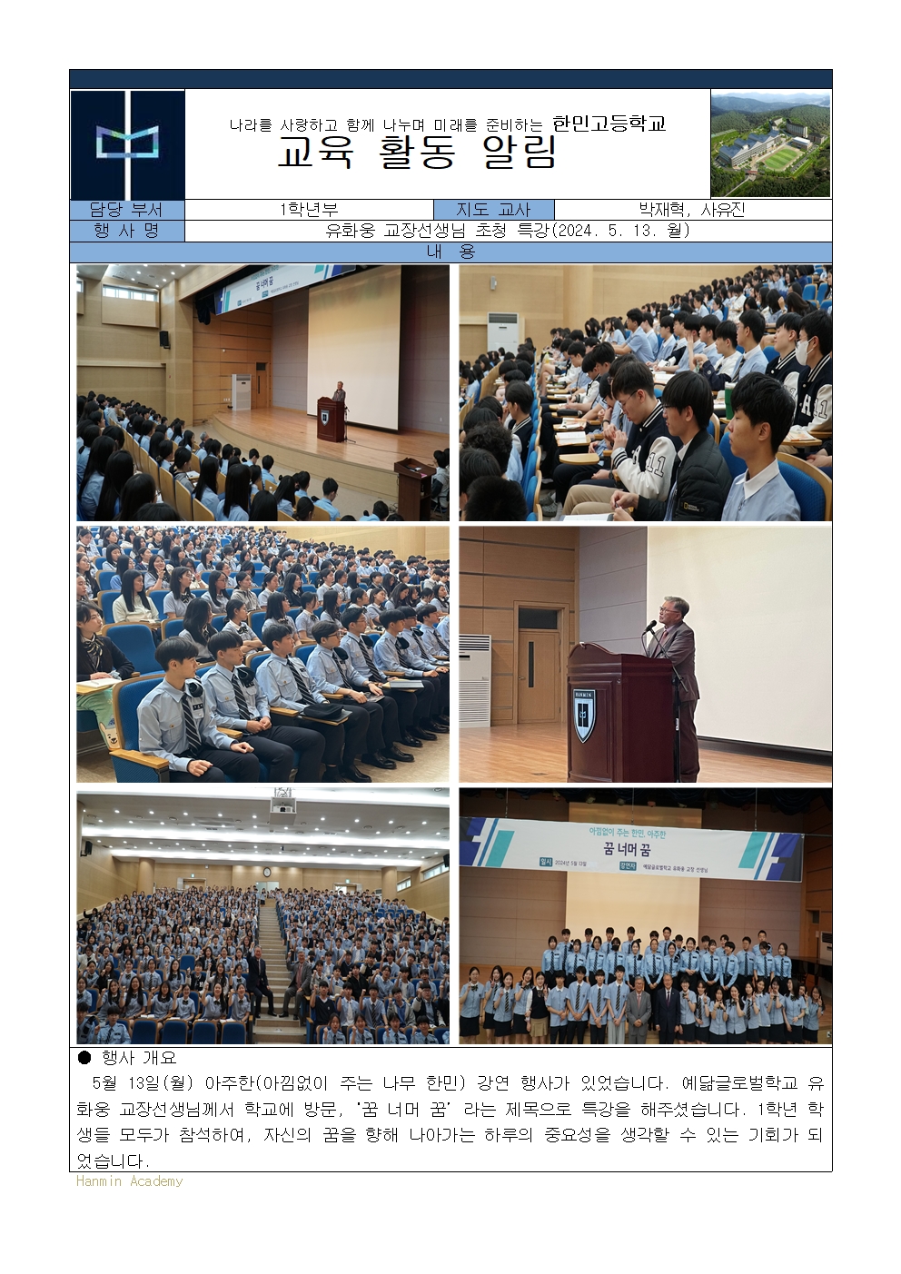 2024-69. [¾ÆÁÖÇÑ] À¯È­¿õ ±³Àå¼±»ý´Ô ÃÊû Ư°­(2024. 5. 13. )