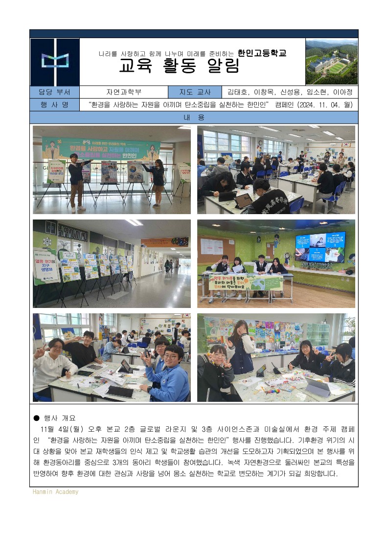 2024-106. ȯ°æÀ» »ç¶ûÇÏ´Â ÀÚ¿øÀ» ¾Æ³¢¸ç ź¼ÒÁ߸³À» ½ÇõÇÏ´Â ÇѹÎÀÎ Ä·ÆäÀÎ