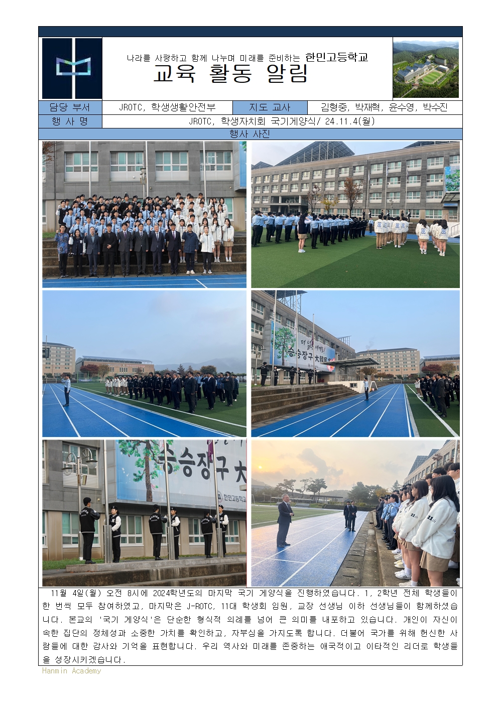 2024-113. JROTC, ÇлýÀÚġȸ ±¹±â°Ô¾ç½Ä/ 24.11.4(¿ù)