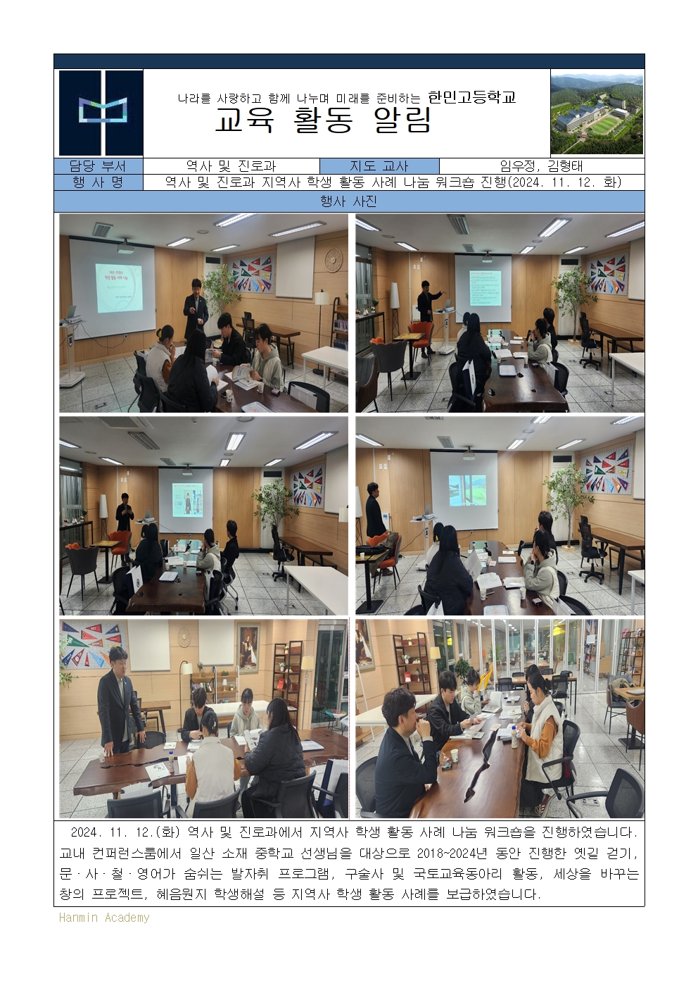 2024-120. ¿ª»ç ¹× Áø·Î°ú Áö¿ª»ç Çлý Ȱµ¿ »ç·Ê ³ª´® ¿öÅ©¼ó ÁøÇà(2024. 11. 12. È­)