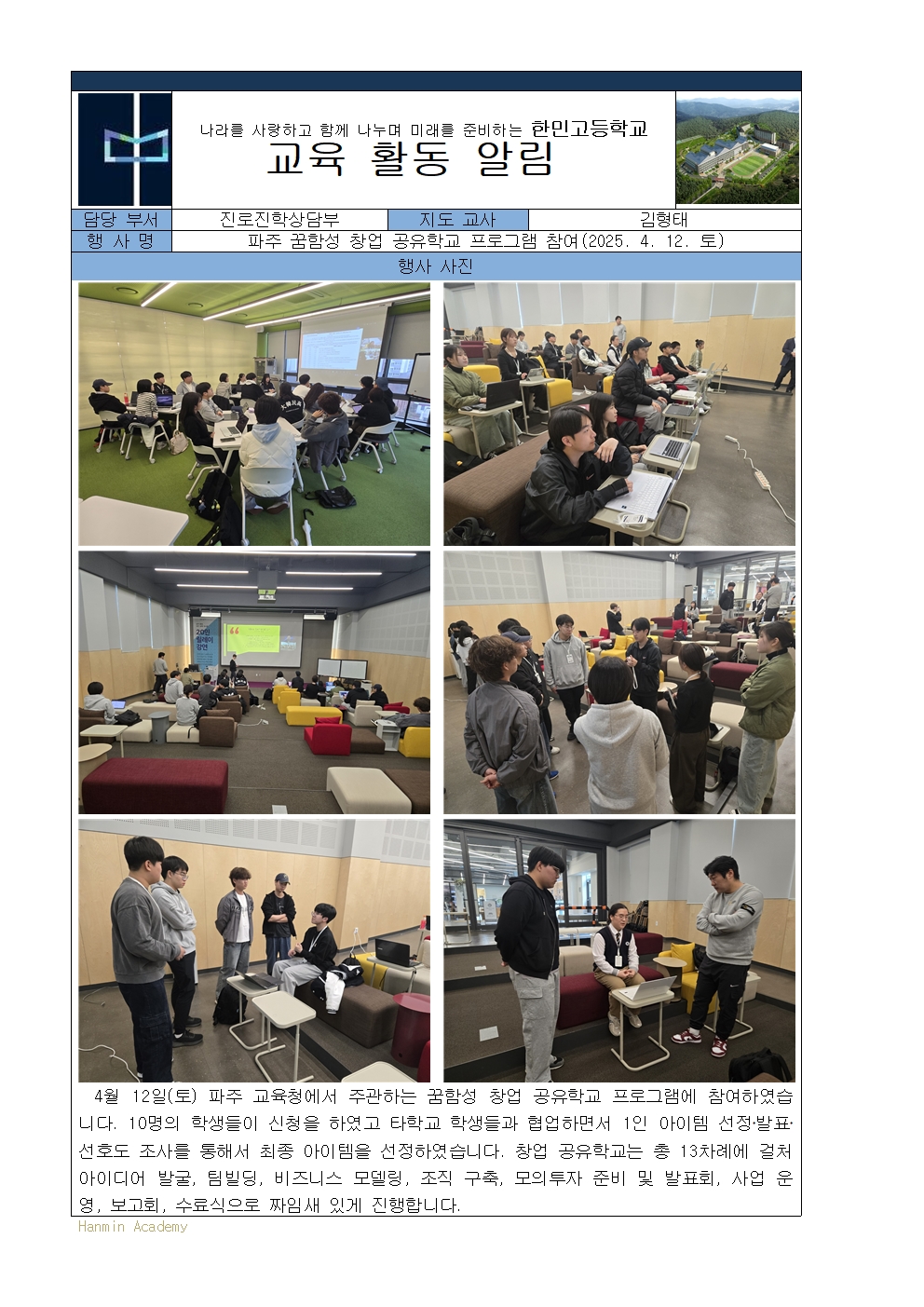 2025-13. ÆÄÁÖ ²ÞÇÔ¼º â¾÷ °øÀ¯Çб³ ÇÁ·Î±×·¥ Âü¿©(2025. 4. 12. Åä)