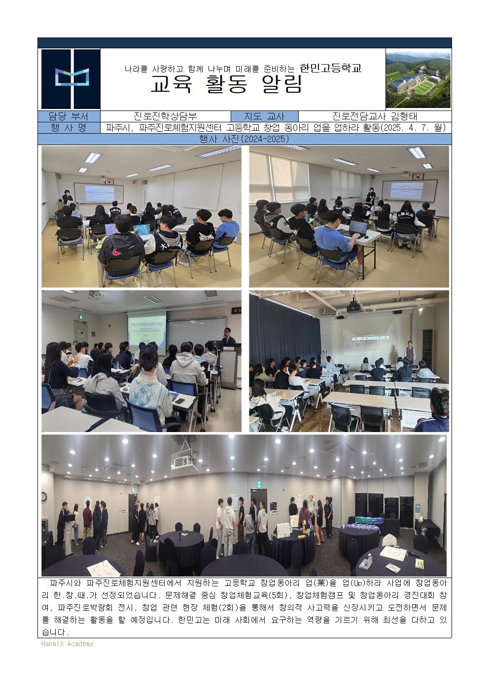 2025-16. ÆÄÁÖ½Ã-ÆÄÁÖÁø·ÎüÇèÁö¿ø¼¾ÅÍ °íµîÇб³ â¾÷ µ¿¾Æ¸® ¾÷À» ¾÷Ç϶ó Ȱµ¿(2025. 4. 7. ¿ù)