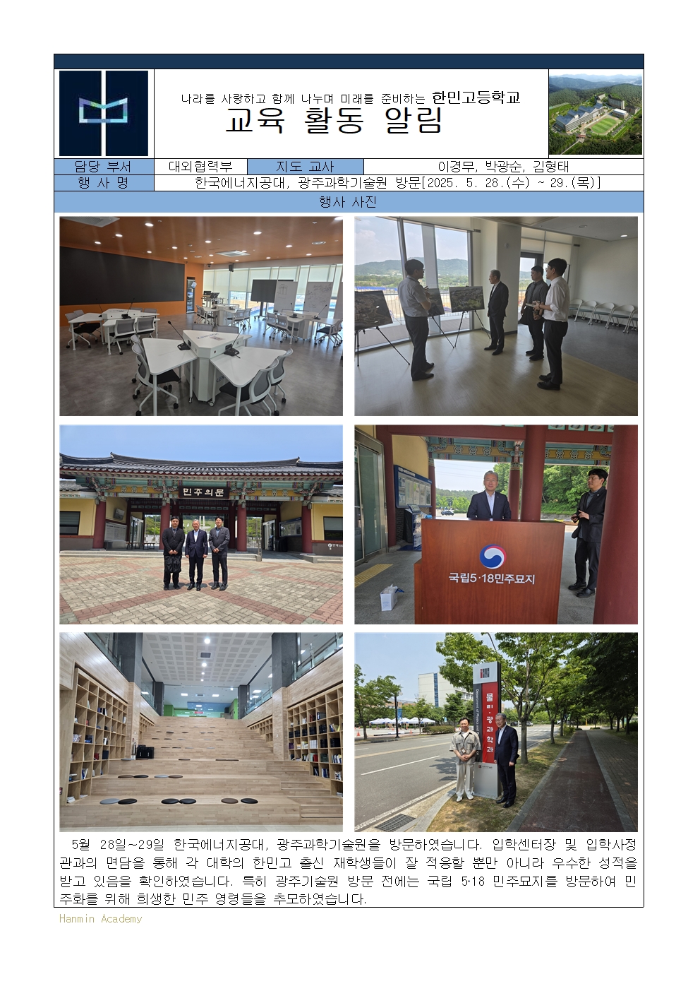 2025-33. Çѱ¹¿¡³ÊÁö°ø´ë, ±¤ÁÖ°úÇбâ¼ú¿ø ¹æ¹®[2025. 5. 28.(¼ö) ~ 29.(¸ñ)]