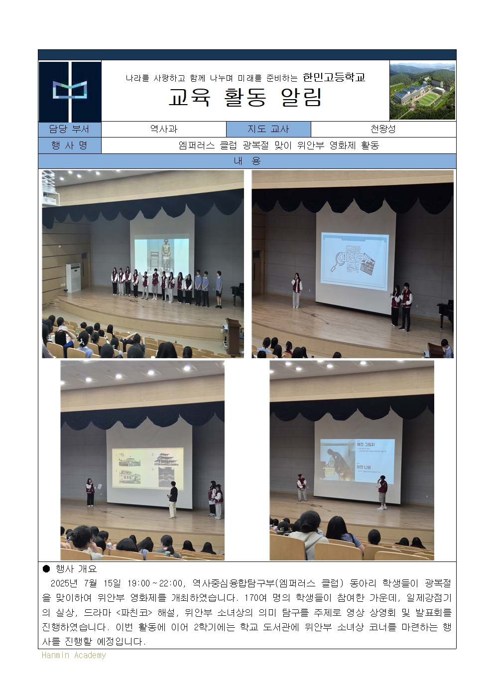2025-49. ¿¥ÆÛ·¯½ºÅ¬·´ ±¤º¹Àý ¸ÂÀÌ À§¾ÈºÎ ¿µÈ­Á¦ °³ÃÖ(2025. 7. 15.)