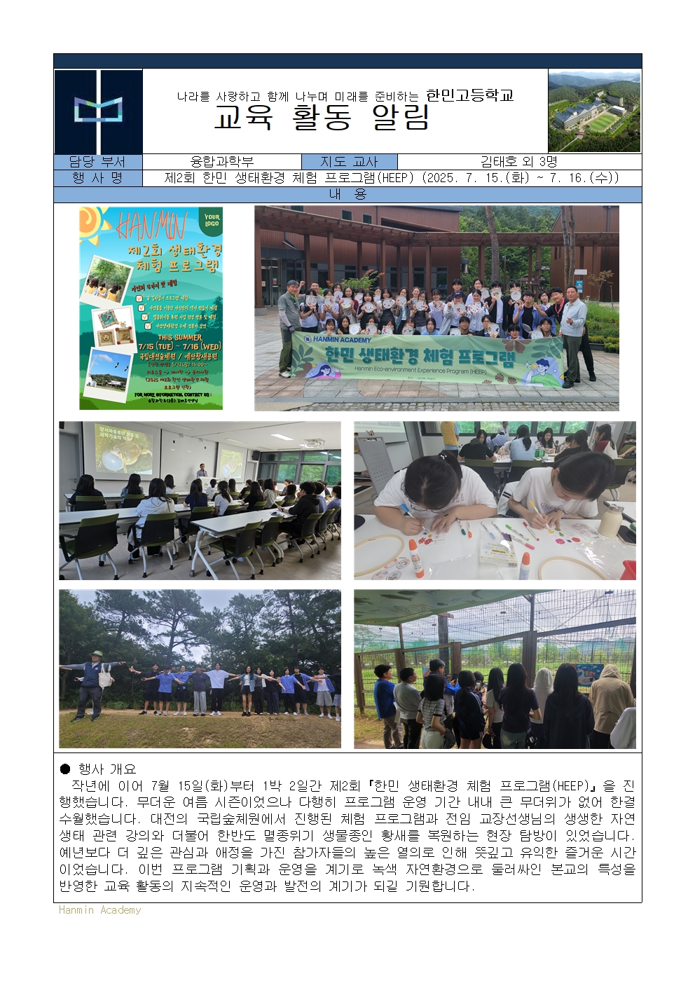 2025-52. Á¦2ȸ ÇѹΠ»ýÅÂȯ°æ üÇè ÇÁ·Î±×·¥ (2025. 7. 15~7. 16.)