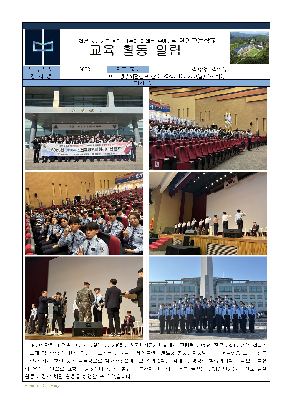 2025-70. JROTC º´¿µÃ¼ÇèÄ·ÇÁ Âü¿©[2025. 10. 27.(¿ù)~28(È­)]