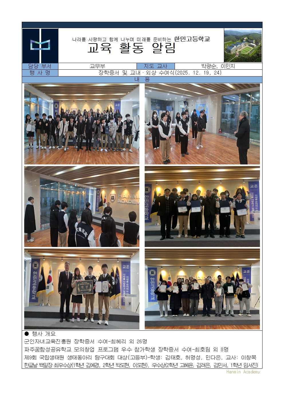 2025-101. ÀåÇÐÁõ¼­ ¹× ±³³»¡¤¿Ü»ó ¼ö¿©½Ä(2025. 12. 19, 24)