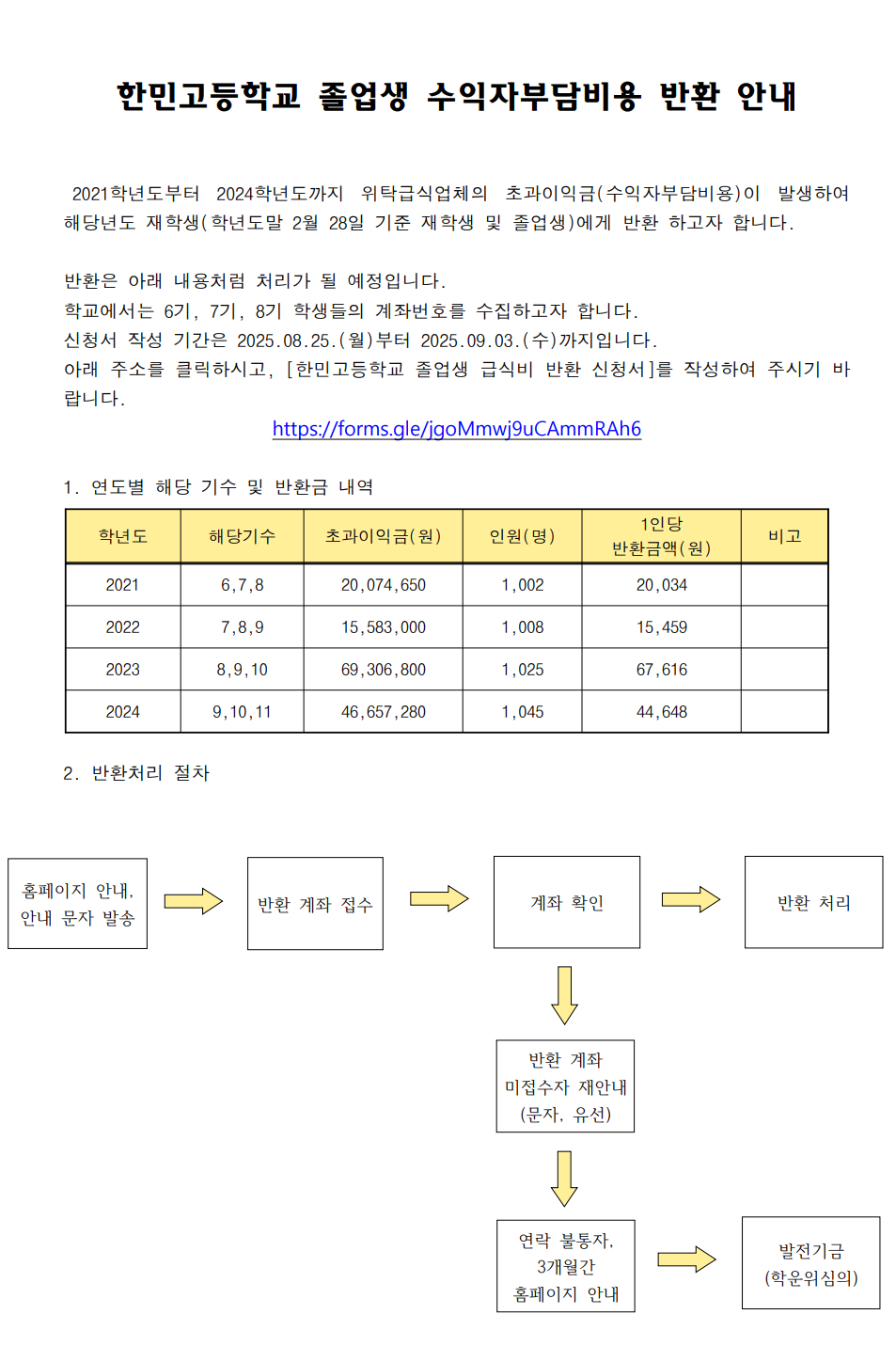 [ÇѹΰíµîÇб³ Á¹¾÷»ý ±Þ½Äºñ ¹Ýȯ ½Åû¼­ ÀÛ¼º ÁÖ¼Ò]
