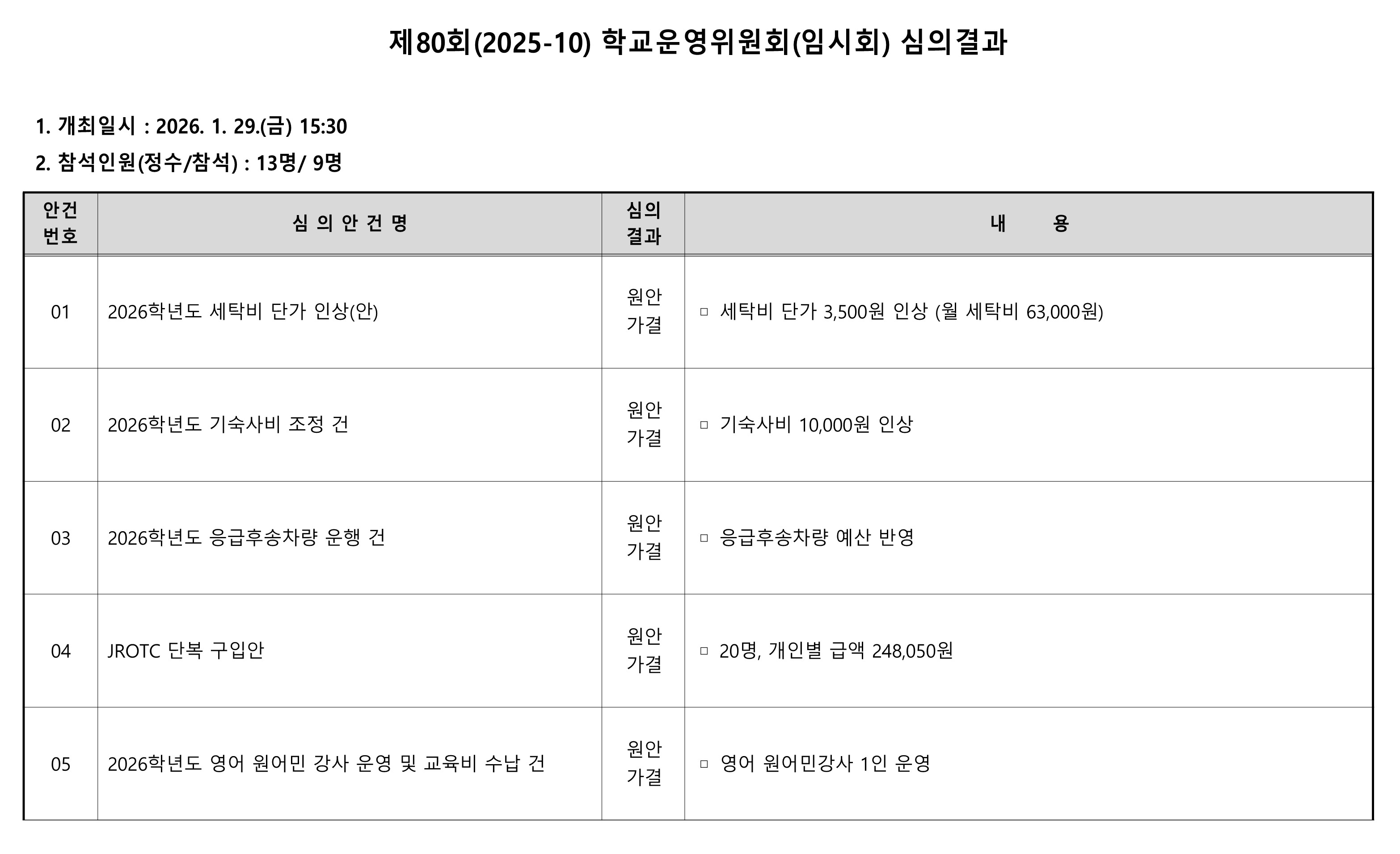 Á¦80ȸ(2025-10) Çб³¿î¿µÀ§¿øÈ¸(ÀÓ½Ãȸ) ½ÉÀǰá°ú