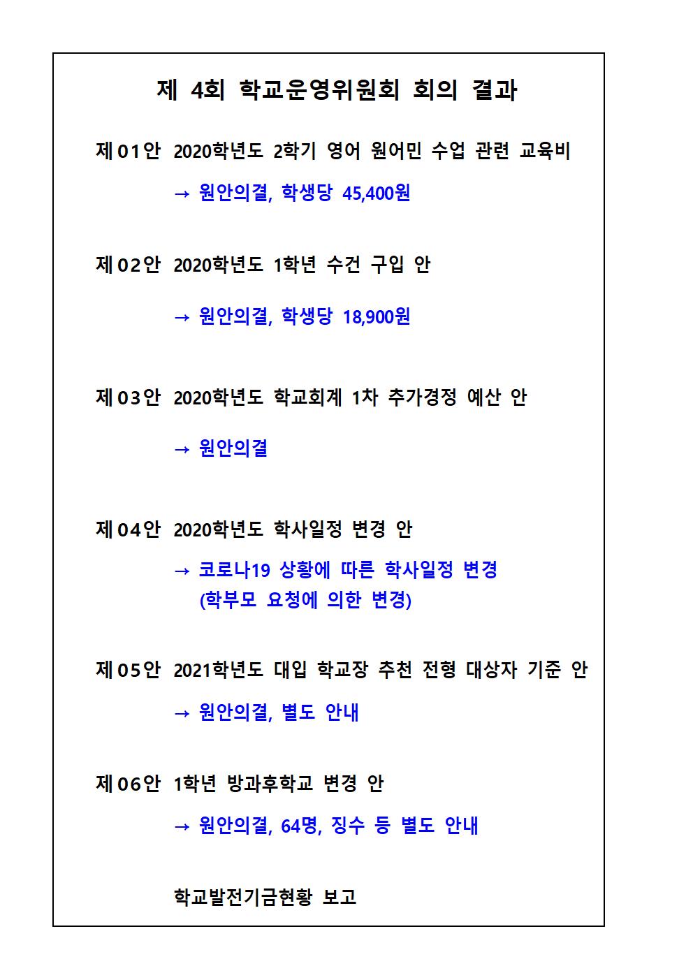 Á¦4ȸ Çб³¿î¿µÀ§¿øÈ¸ ȸÀÇ °á°ú