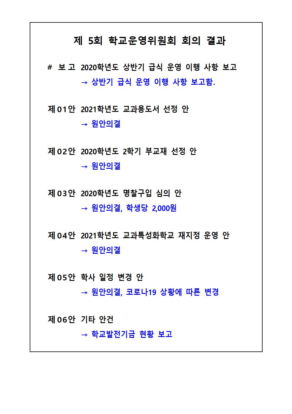 Á¦5ȸ Çб³¿î¿µÀ§¿øÈ¸ ȸÀÇ °á°ú