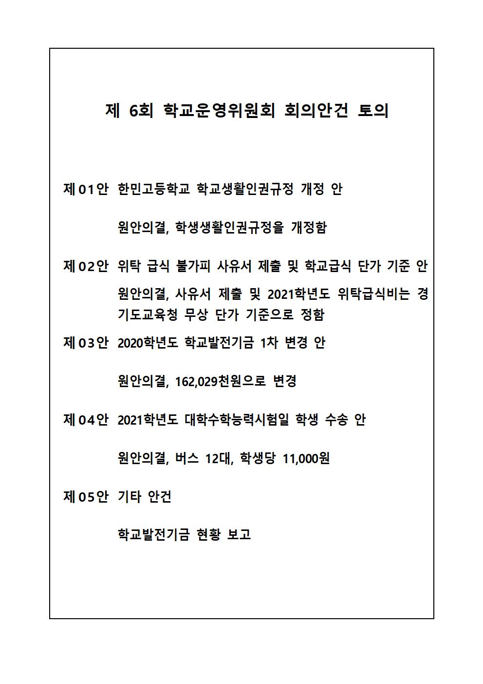 Á¦6ȸ Çб³¿î¿µÀ§¿øÈ¸ ȸÀÇ °á°ú