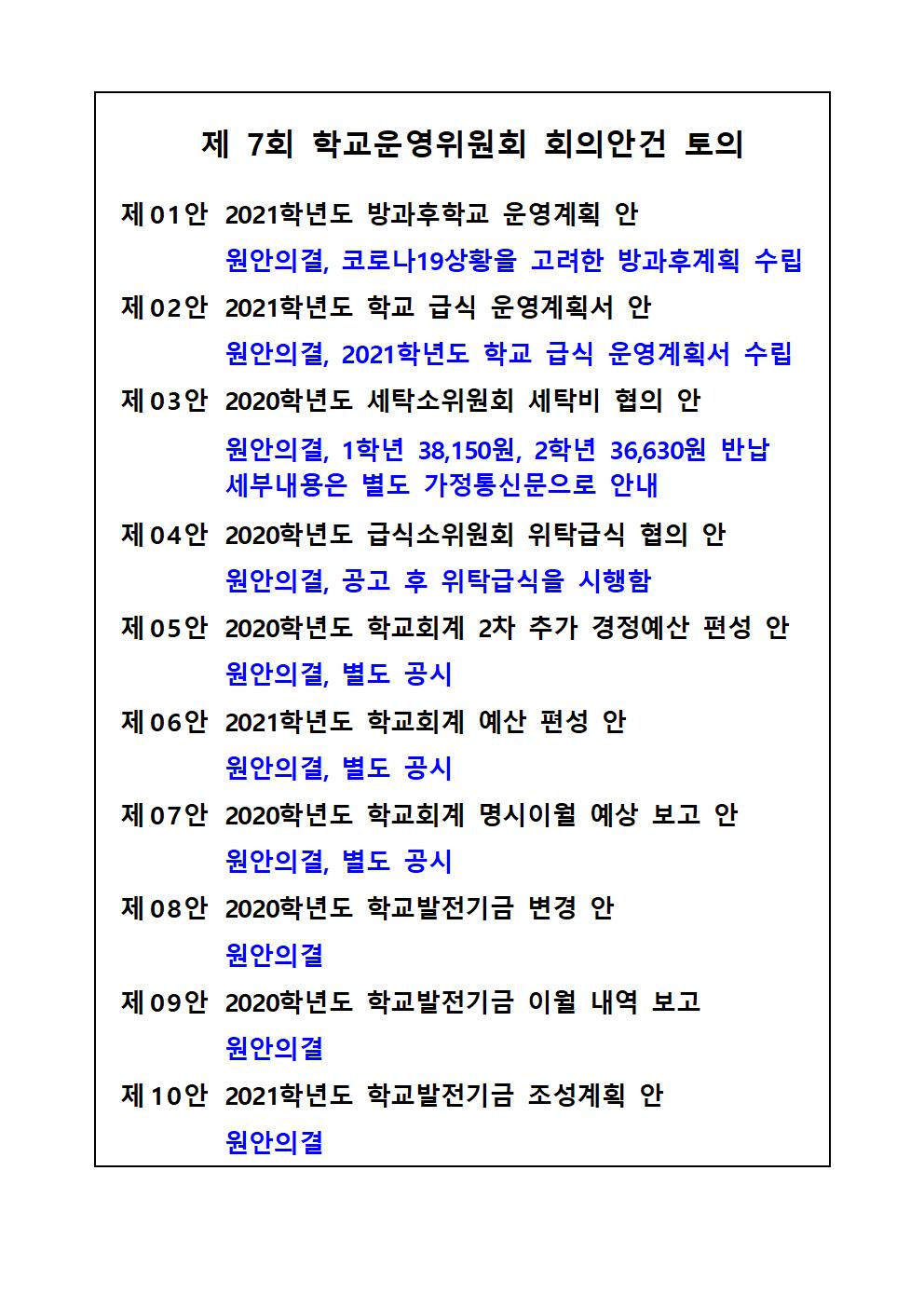 Á¦7ȸ Çб³¿î¿µÀ§¿øÈ¸ ȸÀÇ °á°ú