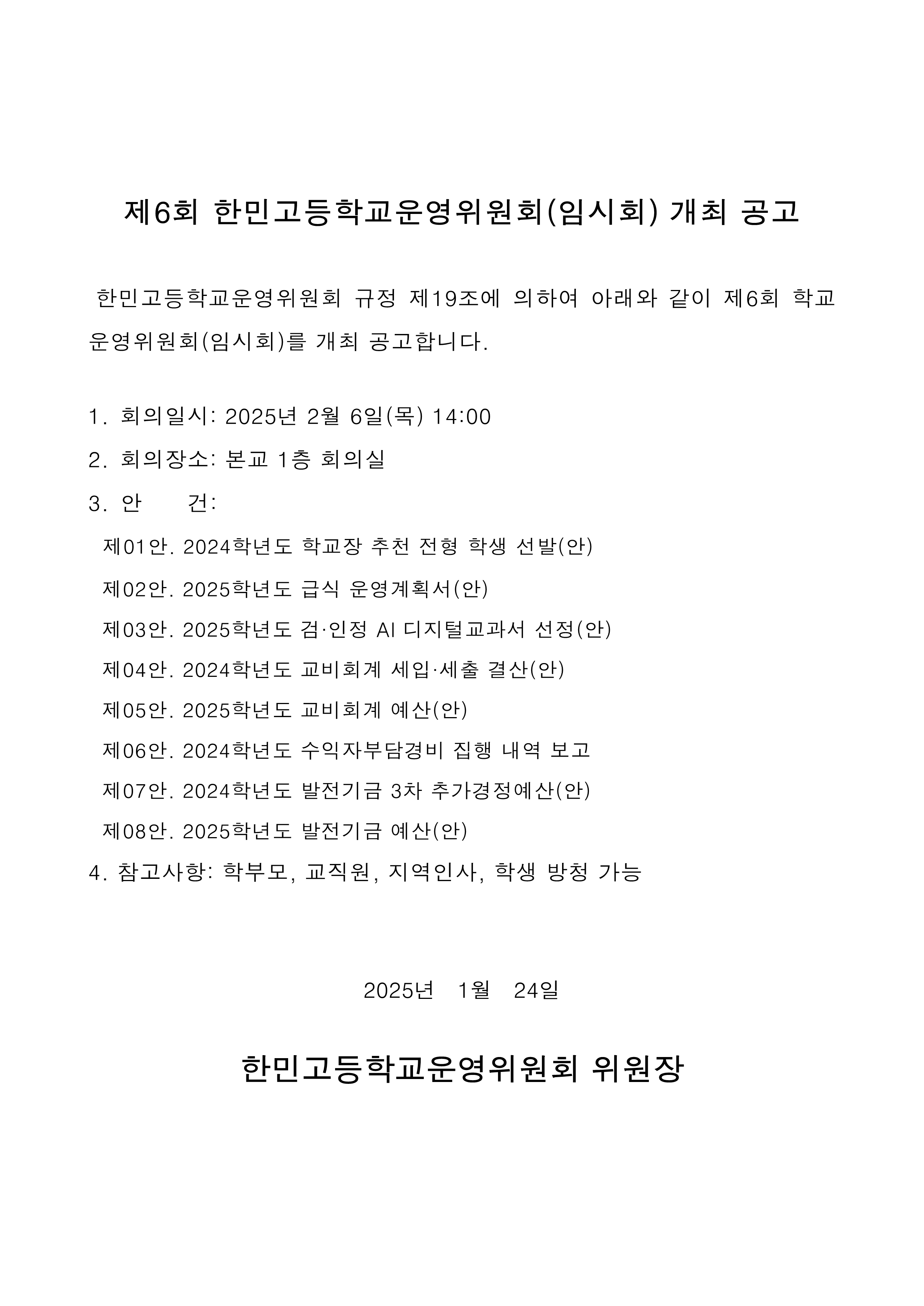 2024Çг⵵ Á¦6ȸ Çб³¿î¿µÀ§¿øÈ¸ °³ÃÖ ¾Ë¸²(¼öÁ¤)