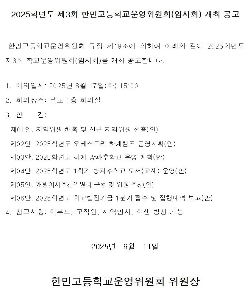 2025Çг⵵ Á¦3ȸ Çб³¿î¿µÀ§¿øÈ¸ °³ÃÖ ¾Ë¸²(¼öÁ¤)
