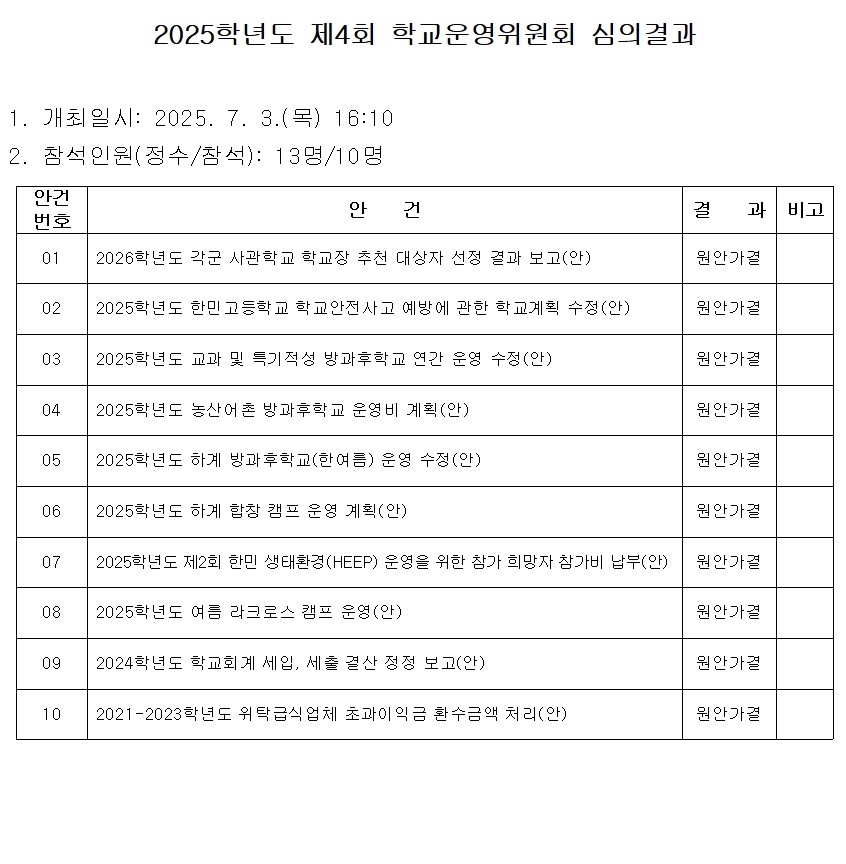 2025Çг⵵ Á¦4ȸ Çб³¿î¿µÀ§¿øÈ¸ ½ÉÀǰá°ú
