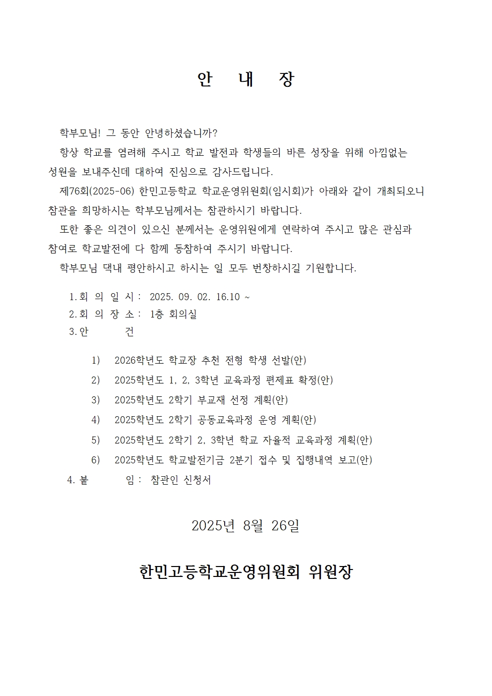 Á¦76ȸ(2025-06) Çб³¿î¿µÀ§¿øÈ¸(ÀÓ½Ãȸ) °³ÃÖ ¾Ë¸²(¼öÁ¤)