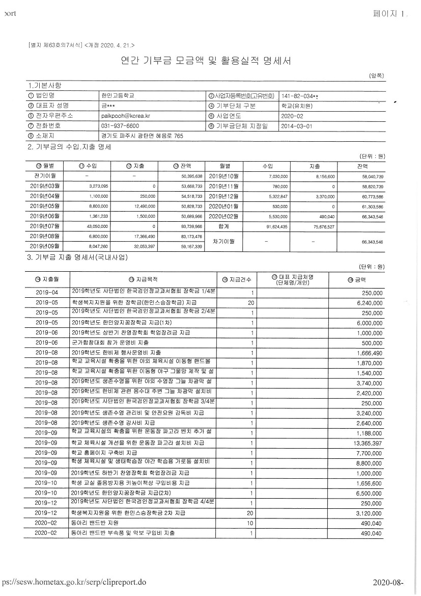 ¿¬°£ ±âºÎ±Ý ¸ð±Ý¾× ¹× Ȱ¿ë½ÇÀû ¸í¼¼¼­¸¦ ´ÙÀ½°ú °°ÀÌ °ø°³ÇÕ´Ï´Ù.