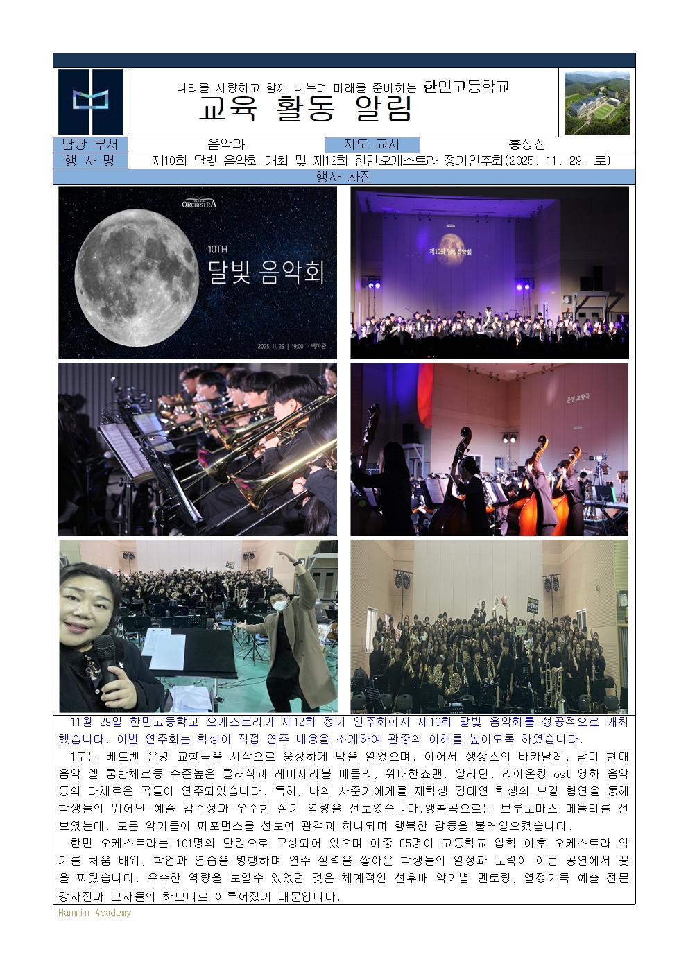 2025-95. Á¦10ȸ ´Þºû À½¾Çȸ °³ÃÖ ¹× Á¦12ȸ ÇѹοÀÄɽºÆ®¶ó Á¤±â¿¬ÁÖȸ(2025. 11. 29. Åä)